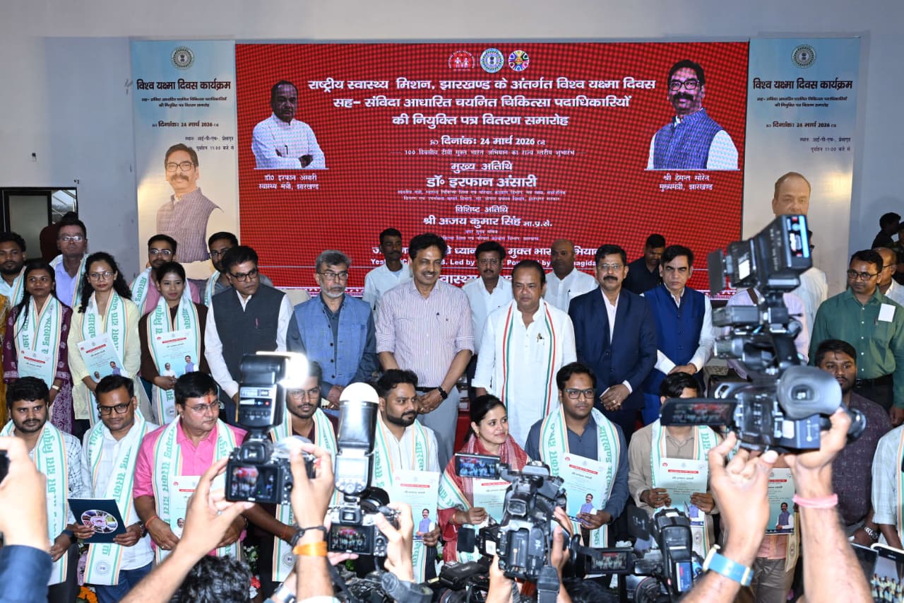 रांची। स्वास्थ्य मंत्री इरफान अंसारी ने राष्ट्रीय यक्ष्मा (टीबी) दिवस के अवसर पर नामकुम स्थित आईपीएच सभागार में आयोजित कार्यक्रम में मंगलवार को 76 मेडिकल ऑफिसरों को नियुक्ति पत्र सौंपा।